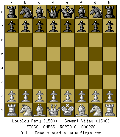 Last move : 0-1 2019 October 9 13:4:42 [Event "FICGS__CHESS__RAPID_C__000220"] [Site "FICGS"] [Date "2019.09.09"] [Round "1"] [White "Louplou,Remy"] [Black "Sawant,Vijay"] [Result "0-1"] [WhiteElo "1500"] [BlackElo "1500"] 0-1 This chess game has been lost on time (started : 2019.09.09 8:30:3) Player Black won this chess game. Follow this game move after move (download)Of Chess it has been said that life is not long enough for it, but that is the fault of life, not Chess. (William Ewart Napier) Mit Schach schule ich mein Gefühl für Geometrie, was für Tennis und Schach gleichermaßen wichtig ist. (Boris Becker) Algunos sacrificios son sólidos, los demás son míos. (Mikhail Tal) Les Cavaliers se révèlent fort utiles dans les positions fermées. D'habitude, les Fous sont un peu plus forts que les Cavaliers dans les positions ouvertes. Qu'on le veuille ou non, il restera toujours des exceptions ! There is a great deal of difference between an eager man who wants to read a book and a tired man who wants a book to read. (G.K. Chesterton)