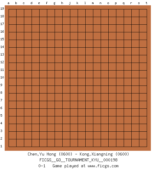 Last move : 0-1 2019 November 6 0:3:6 [Event "FICGS__GO__TOURNAMENT_KYU__000198"] [Site "FICGS"] [Date "2019.10.06"] [Round "1"] [Black "Chen,Yu Hong"] [White "Kong,Xiangning"] [Result "0-1"] [Rating 1 "0600"] [Rating 2 "0600"] 0-1 This go game has been lost on time (started : 2019.10.06 20:41:51) Here are the names of the openings (joseki) played in the four corners : Player White won this Go (weiqi, baduk) game. Follow this game move after move (download)The second line is the line of defeat, the third line is the line of territory, and the fourth line is the line of influence. (Anonymous) The greatest con, that he ever pulled... was making you believe... that he is you. (Revolver, movie)