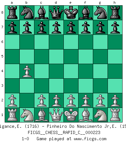 Last move : 1-0 2019 November 11 16:22:23 [Event "FICGS__CHESS__RAPID_C__000223"] [Site "FICGS"] [Date "2019.10.11"] [Round "1"] [White "Trigance,Emile"] [Black "Pinheiro Do Nascimento Jr,Elzimar"] [Result "1-0"] [WhiteElo "1716"] [BlackElo "1500"] 1.b4 1-0 This chess game has been lost on time (started : 2019.10.11 21:51:9) Polish (Sokolsky) opening Player White won this chess game. Follow this game move after move (download)Chess is thirty to forty percent psychology. You don't have this when you play a computer. I can't confuse it. (Judith Polgar) Das Blackmar-Diemer-Gambit verändert den ganzen Menschen! (Emil Joseph Diemer) Cualquier cambio de material en una posición debe venir por medio de un mate, una captura o promoción de Peón. (Purdy) À la honte des hommes, on sait que les lois du jeu sont les seules qui soient partout justes, claires, inviolables et exécutées. Pourquoi l'Indien qui a donné les règles du jeu d'échecs est-il obéi de bon gré dans toute la terre, et que les décrétales des papes, par exemple, sont aujourd'hui un objet d'horreur et de mépris ? C'est que l'inventeur des échecs combina tout avec justesse pour la satisfaction des joueurs, et que les papes, dans leurs décrétales, n'eurent en vue que leur seul avantage. L'Indien voulut exercer également l'esprit des hommes et leur donner du plaisir; les papes ont voulu abrutir l'esprit des hommes. Voltaire (Dictionnaire philosophique / Garnier 1967) Panic is a sudden desertion of us, an a going over to the enemy of our imagination. (Christian Nevell Bovee)