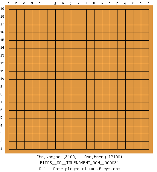 Last move : 0-1 2019 November 14 20:21:28 [Event "FICGS__GO__TOURNAMENT_DAN__000031"] [Site "FICGS"] [Date "2019.10.15"] [Round "1"] [Black "Cho,Wonjae"] [White "Ahn,Harry"] [Result "0-1"] [Rating 1 "2100"] [Rating 2 "2100"] 0-1 This go game has been lost on time (started : 2019.10.15 19:51:42) Here are the names of the openings (joseki) played in the four corners : Player White won this Go (weiqi, baduk) game. Follow this game move after move (download)I really believe that Go is destined to take the place of Chess as the leading intellectual game of the Occident, just as it has reigned supreme in the Orient for some four thousand years. (Edward Lasker, international chess master) Secret operations are essential in war; upon them the army relies to make its every move. (Sun Tzu)