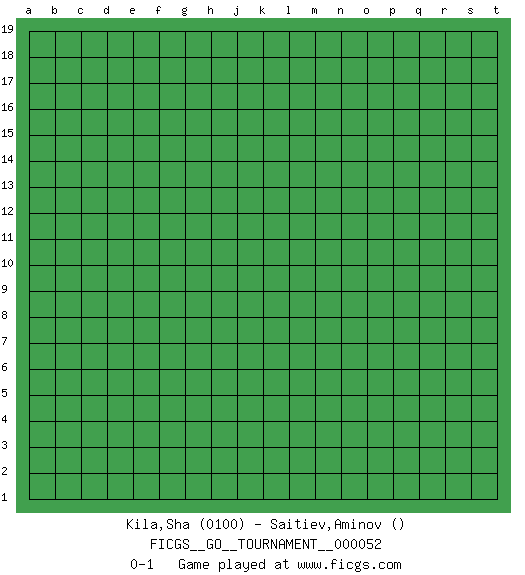 Last move : 0-1 2019 December 3 11:37:25 [Event "FICGS__GO__TOURNAMENT__000052"] [Site "FICGS"] [Date "2019.11.03"] [Round "1"] [Black "Kila,Sha"] [White "Saitiev,Aminov"] [Result "0-1"] [Rating 1 "0100"] 0-1 This go game has been lost on time (started : 2019.11.03 8:1:25) Here are the names of the openings (joseki) played in the four corners : Player White won this Go (weiqi, baduk) game. Follow this game move after move (download)There are players who don't accept exchange: they play many moves that perpetuate a previous state of the game. (Pierre Audouard) Excelling at chess has long been considered a symbol of more general intelligence. That is an incorrect assumption in my view, as pleasant as it might be. But for the purposes of argument and investigation, chess is, in Russkin-Gutman's words, 'an unparalleled laboratory, since both the learning process and the degree of ability obtained can be objectified and quantified, providing an excellent comparative framework on which to use rigorous analytical techniques.' (The Chess Master and the Computer, by Garry Kasparov - 2010)
