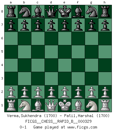 Last move : 0-1 2019 December 7 11:56:4 [Event "FICGS__CHESS__RAPID_B__000329"] [Site "FICGS"] [Date "2019.11.06"] [Round "1"] [White "Verma,Sukhendra"] [Black "Patil,Harshal"] [Result "0-1"] [WhiteElo "1700"] [BlackElo "1700"] 0-1 This chess game has been lost on time (started : 2019.11.06 22:53:5) Player Black won this chess game. Follow this game move after move (download)A good sacrifice is one that is not necessarily sound but leaves your opponent dazed and confused. (Rudolph Spielmann) Wenn ein Kopf und ein Buch zusammenstoßen und es klingt hohl, ist es denn allemal im Buche? (Georg Christoph Lichtenberg) Al jugar al Ajedrez entonces, podemos aprender: Primero: Previsión... Segundo: Prudencia... Tercero: Cautela... Y al final, aprendemos del Ajedrez el hábito de no ser desanimados por apariencias malas presentes en el estado de nuestros asuntos, el hábito de la esperanza por una oportunidad favorable y la perseveración de los secretos de los recursos. (Benjamin Franklin) Pour se monter efficace, un Cavalier a besoin d'avant-postes ! Les Cavaliers font les meilleurs bloqueurs de pions passés. Once you start thinking you have nothing left to learn, you have everything to learn. (Steve Badget)