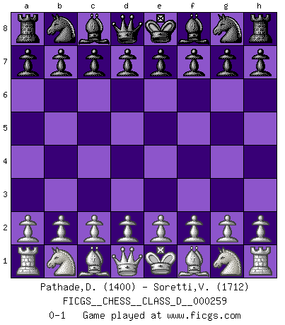 Last move : 0-1 2019 December 29 13:14:7 [Event "FICGS__CHESS__CLASS_D__000259"] [Site "FICGS"] [Date "2019.11.19"] [Round "1"] [White "Pathade,Digvijay"] [Black "Soretti,Vincenzo"] [Result "0-1"] [WhiteElo "1400"] [BlackElo "1712"] 0-1 This chess game has been lost on time (started : 2019.11.19 11:43:43) Player Black won this chess game. Follow this game move after move (download)On the chessboard, lies and hypocrisy do not survive long. (Emanuel Lasker) Mein Name ist Rustam Kamsky. Sie haben meinen Sohn belästigt. Bereiten Sie sich aufs Sterben vor. (Rustam Kamsky) Yo siempre he tenido un ligero sentimiento de lástima por una persona que no tiene conocimiento del Ajedrez. (Siegbert Tarrasch) Je crois qu'il existe des manières très spécifiques de jouer efficacement contre une machine. Evidemment, nous n'avons aucune chance en technique pure, parce que l'ordinateur calcule de manière parfaite. Mais lorsque nous faisons appel à notre cerveau, en utilisant l'intuition et la compréhension, alors nous restons beaucoup plus forts. (Anatoli Karpov) For peace of mind, resign as general manager of the universe. (Douglas Adams)