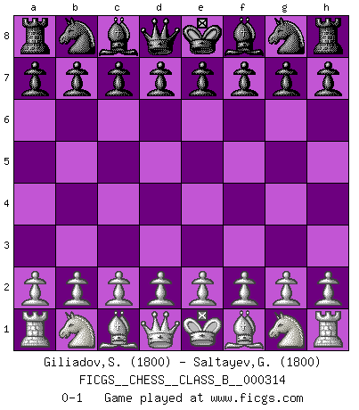 Last move : 0-1 2020 January 4 7:17:55 [Event "FICGS__CHESS__CLASS_B__000314"] [Site "FICGS"] [Date "2019.11.25"] [Round "1"] [White "Giliadov,Stanislav"] [Black "Saltayev,Gennadiy"] [Result "0-1"] [WhiteElo "1800"] [BlackElo "1800"] 0-1 This chess game has been lost on time (started : 2019.11.25 2:36:48) Player Black won this chess game. Follow this game move after move (download)Nothing excites jaded Grandmasters more than a theoretical novelty. (Dominic Lawson) Du musst Deinen Gegner in einen tiefen dunklen Wald führen wo 2+2=5 ist und wo der Weg, der wieder hinausführt, nur breit genug für einen ist. (Mikhail Nekhemyevich Tal) Yo jugué Ajedrez con el y a veces le pude haber ganado solo que siempre devuelve su última jugada y juega la partida de manera diferente. (Mark Twain) Une platitude souvent récitée à propos des Echecs est qu'une des choses les plus difficiles à réaliser est de gagner une position gagnante. Cela ne manque pas de sens mais, pour ma part, j'ai toujours trouvé plus difficile de gagner une position perdante. (Tim Krabbe) Are you threatening me, Master Jedi ? (Chancellor Palpatine in Star Wars ep.3)