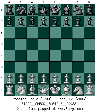 Last move : 0-1 2020 January 1 1:48:28 [Event "FICGS__CHESS__RAPID_B__000331"] [Site "FICGS"] [Date "2019.12.01"] [Round "1"] [White "Rosales,Eddie"] [Black "Berry,Ed"] [Result "0-1"] [WhiteElo "1700"] [BlackElo "2085"] 0-1 This chess game has been lost on time (started : 2019.12.01 13:49:53) Player Black won this chess game. Follow this game move after move (download)One bad move nullifies forty good ones. (Horowitz) Frage des Reporters: -Welche besonderen Umstände rechtfertigen das Anhalten der Uhren während einer Turnierpartie? Antwort: -Einen Fotographen zu strangulieren. (Siegbert Tarrasch) La captura del Rey enemigo es la finalidad pero no el primer objetivo de la partida. (William Steinitz) Karpov est une pièce de musée. (Garry Kasparov) Life is pleasant. Death is peaceful. It's the transition that's troublesome. (Isaac Asimov)
