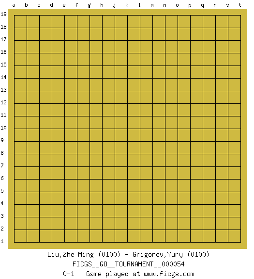 Last move : 0-1 2020 January 4 19:57:41 [Event "FICGS__GO__TOURNAMENT__000054"] [Site "FICGS"] [Date "2019.12.05"] [Round "1"] [Black "Liu,Zhe Ming"] [White "Grigorev,Yury"] [Result "0-1"] [Rating 1 "0100"] [Rating 2 "0100"] 0-1 This go game has been lost on time (started : 2019.12.05 19:33:29) Here are the names of the openings (joseki) played in the four corners : Player White won this Go (weiqi, baduk) game. Follow this game move after move (download)If a formation is symmetrical, play at the center. (Anonymous) They misunderestimated me. (George W. Bush, Bentonville nov. 6, 2000)