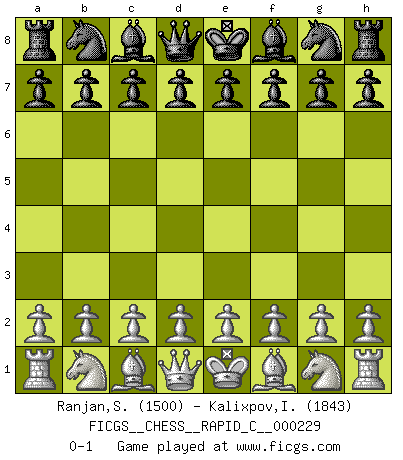 Last move : 0-1 2020 January 12 12:17:19 [Event "FICGS__CHESS__RAPID_C__000229"] [Site "FICGS"] [Date "2019.12.13"] [Round "1"] [White "Ranjan,Shashi Kant"] [Black "Kalixpov,Ivan"] [Result "0-1"] [WhiteElo "1500"] [BlackElo "1843"] 0-1 This chess game has been lost on time (started : 2019.12.13 1:8:33) Player Black won this chess game. Follow this game move after move (download)On the chessboard, lies and hypocrisy do not survive long. (Emanuel Lasker) Wer mein Gambit spielt, muß bereit sein, alle Brücken hinter sich abzubrechen. Es verändert den ganzen Menschen. Es wirkt wie ein Zauberstab und fördert verkümmerte, gute Charakter- eigenschaften wieder zu Tage. (Emil Joseph Diemer) Yo siempre he tenido un ligero sentimiento de lástima por una persona que no tiene conocimiento del Ajedrez. (Siegbert Tarrasch) Je crois qu'il existe des manières très spécifiques de jouer efficacement contre une machine. Evidemment, nous n'avons aucune chance en technique pure, parce que l'ordinateur calcule de manière parfaite. Mais lorsque nous faisons appel à notre cerveau, en utilisant l'intuition et la compréhension, alors nous restons beaucoup plus forts. (Anatoli Karpov) To steal ideas from one person is plagiarism. To steal from many is research. (Unknown)
