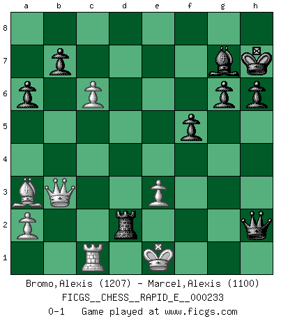 Last move : 0-1 2019 December 26 13:13:17 [Event "FICGS__CHESS__RAPID_E__000233"] [Site "FICGS"] [Date "2019.12.13"] [Round "1"] [White "Bromo,Alexis"] [Black "Marcel,Alexis"] [Result "0-1"] [WhiteElo "1207"] [BlackElo "1100"] 1.d4 f5 2.c4 Nf6 3.Nc3 g6 4.Nf3 Bg7 5.e3 d6 6.Be2 O-O 7.O-O Nbd7 8.h3 Re8 9.Re1 e5 10.d5 Nc5 11.b4 Nce4 12.Nxe4 Nxe4 13.Bb2 Bd7 14.Ba3 Nc3 15.Qb3 Nxe2+ 16.Rxe2 e4 17.Nd4 a6 18.c5 dxc5 19.bxc5 Rb8 20.d6 Kh8 21.dxc7 Qxc7 22.Rd1 Rbd8 23.Rc2 h6 24.h4 Kh7 25.f3 exf3 26.Nxf3 Bc6 27.Rxd8 Rxd8 28.Rc1 Bxf3 29.gxf3 Qg3+ 30.Kf1 Qxf3+ 31.Ke1 Qg3+ 32.Ke2 Qxh4 33.c6 Qh2+ 34.Ke1 Rd2 0-1 Dutch with c4 & Nc3 Kingside Castling by player Black (move 6) Kingside Castling by player White (move 7) Player Black won this chess game. Follow this game move after move (download)To avoid losing a piece, many a person has lost the game. (Savielly Tartakover) Im Blitz ist es einfacher mit einer Figur weniger anzugreifen, als sich mit einer Mehrfigur zu verteidigen. (Mikhail Nekhemyevich Tal) En partidas rápidas, el Caballo es mas poderoso que el Alfil. (Vlastimil Hort) Le plus grand jeu de l'esprit jamais inventé, plus vous l'apprenez, plus vous y prenez du plaisir. (Garry Kasparov) The greatest con, that he ever pulled... was making you believe... that he is you. (Revolver, movie)