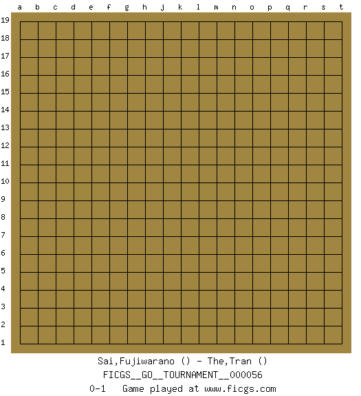 Last move : 0-1 2020 January 16 9:34:31 [Event "FICGS__GO__TOURNAMENT__000056"] [Site "FICGS"] [Date "2019.12.16"] [Round "1"] [Black "Sai,Fujiwarano"] [White "The,Tran"] [Result "0-1"] 0-1 This go game has been lost on time (started : 2019.12.16 19:52:45) Here are the names of the openings (joseki) played in the four corners : Player White won this Go (weiqi, baduk) game. Follow this game move after move (download)Go is to western chess what philosophy is to double entry accounting. (from Shibumi, by Trevanian) Good luck. You're gonna need it. (Han Solo in Star Wars ep.6)