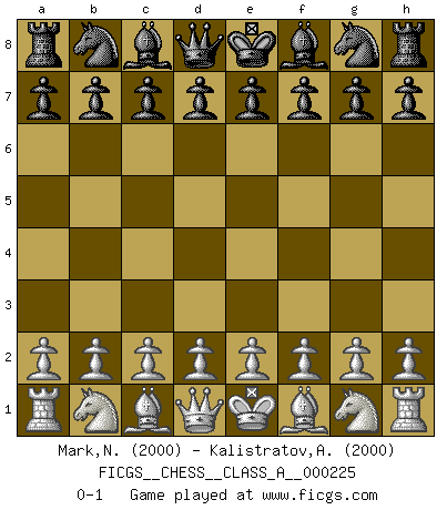 Last move : 0-1 2020 March 31 19:50:48 [Event "FICGS__CHESS__CLASS_A__000225"] [Site "FICGS"] [Date "2020.02.20"] [Round "1"] [White "Mark,Niyar"] [Black "Kalistratov,Aleksandr"] [Result "0-1"] [WhiteElo "2000"] [BlackElo "2000"] 0-1 This chess game has been lost on time (started : 2020.02.20 11:43:46) Player Black won this chess game. Follow this game move after move (download)It's always better to sacrifice your opponent's men. (Savielly Tartakover) Es gibt zwei Arten von Opfern: Korrekte und meine. (Mikhail Nekhemyevich Tal) Los Peones son el alma de una partida de Ajedrez. (Francois Andre Danican Philidor) Mais l'homme est une créature légère et illogique : semblable au joueur d'échecs, il n'aime que le processus du but à atteindre, non le but lui-même. (Dostoïevsky) No enterprise is more likely to succeed than one concealed from the enemy until it is ripe for execution. (Niccolo Machiavelli)