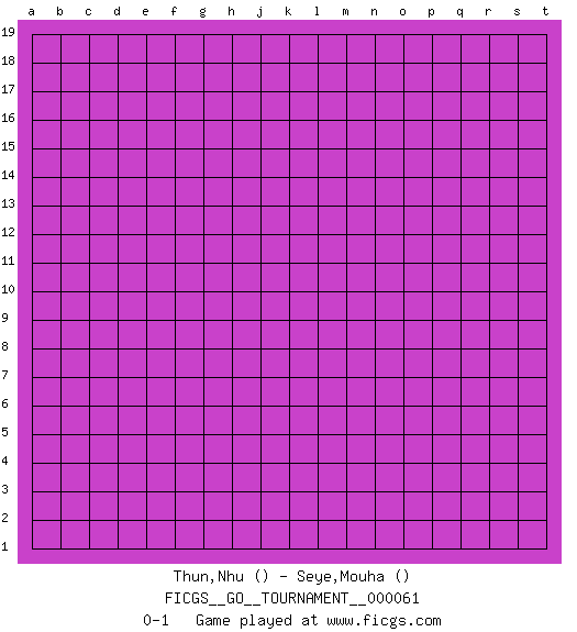 Last move : 0-1 2020 April 16 2:22:10 [Event "FICGS__GO__TOURNAMENT__000061"] [Site "FICGS"] [Date "2020.03.16"] [Round "1"] [Black "Thun,Nhu"] [White "Seye,Mouha"] [Result "0-1"] 0-1 This go game has been lost on time (started : 2020.03.16 22:28:55) Here are the names of the openings (joseki) played in the four corners : Player White won this Go (weiqi, baduk) game. Follow this game move after move (download)Be a little patient. Keshi works ! (Anonymous) It's only after you lost everything, Tyler says, that you're free to do anything. (Chuck Palahniuk, Fight Club)