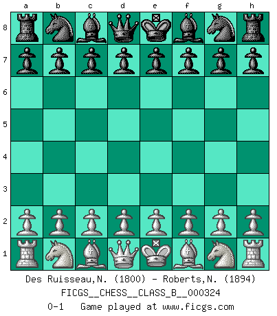 Last move : 0-1 2020 June 22 7:19:31 [Event "FICGS__CHESS__CLASS_B__000324"] [Site "FICGS"] [Date "2020.05.12"] [Round "1"] [White "Des Ruisseau,Nathaniel"] [Black "Roberts,Neil"] [Result "0-1"] [WhiteElo "1800"] [BlackElo "1894"] 0-1 This chess game has been lost on time (started : 2020.05.12 19:13:27) Player Black won this chess game. Follow this game move after move (download)Every Pawn is a potential Queen. (James Mason) Der Traum, für den ich lebe, ist der von einem freien Russland. Viele mögen sagen: Russland hat doch ein Parlament, einen gewählten Präsidenten. Aber ich spüre, dass in meiner Heimat die Angst wiederkehrt. Eine Angst, sich frei zu äußern, bestimmte Dinge zu tun (Garry Kasparov) Es el objetivo de la escuela moderna no tratar cada posición de acuerdo a una regla general, sino de acuerdo al principio inherente en la posición. (Richard Reti) Les Echecs sont et restent toujours un combat, un combat intégral comme la boxe, la lutte ou un autre sport, et où il doit y avoir un vainqueur et un vaincu. (Joseph Emil Diemer) To steal ideas from one person is plagiarism. To steal from many is research. (Unknown)