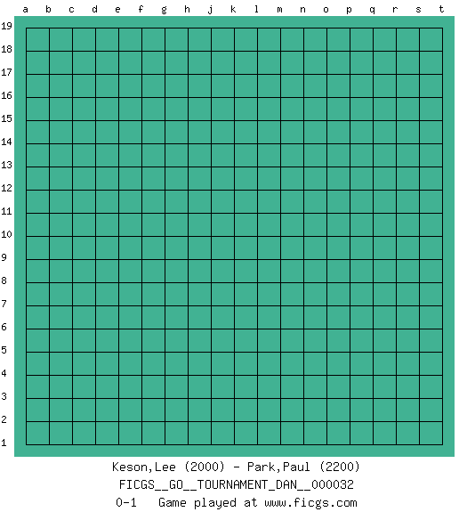 Last move : 0-1 2020 June 13 16:28:2 [Event "FICGS__GO__TOURNAMENT_DAN__000032"] [Site "FICGS"] [Date "2020.05.14"] [Round "1"] [Black "Keson,Lee"] [White "Park,Paul"] [Result "0-1"] [Rating 1 "2000"] [Rating 2 "2200"] 0-1 This go game has been lost on time (started : 2020.05.14 14:25:37) Here are the names of the openings (joseki) played in the four corners : Player White won this Go (weiqi, baduk) game. Follow this game move after move (download)When your opponent is thick, you must also become thick. (Otake Hideo, 9p) Your best chance to get a Royal Flush in a casino is in the bathroom. (Anonymous)