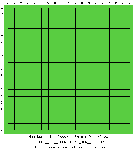 Last move : 0-1 2020 June 13 16:28:2 [Event "FICGS__GO__TOURNAMENT_DAN__000032"] [Site "FICGS"] [Date "2020.05.14"] [Round "1"] [Black "Hao Kuan,Lin"] [White "Shibin,Yin"] [Result "0-1"] [Rating 1 "2000"] [Rating 2 "2100"] 0-1 This go game has been lost on time (started : 2020.05.14 14:25:37) Here are the names of the openings (joseki) played in the four corners : Player White won this Go (weiqi, baduk) game. Follow this game move after move (download)Play slow, win slow; play fast, lose fast. (Anonymous) Unless I accept my faults I will most certainly doubt my virtues. (Hugh Prather)