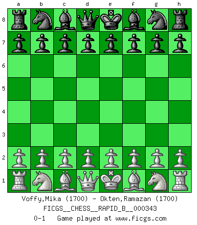 Last move : 0-1 2020 June 22 7:19:31 [Event "FICGS__CHESS__RAPID_B__000343"] [Site "FICGS"] [Date "2020.05.22"] [Round "1"] [White "Voffy,Mika"] [Black "Okten,Ramazan"] [Result "0-1"] [WhiteElo "1700"] [BlackElo "1700"] 0-1 This chess game has been lost on time (started : 2020.05.22 19:52:14) Player Black won this chess game. Follow this game move after move (download)Chess is a fighting game which is purely intellectual and includes chance. (Richard Reti) Im Leben werden Partien nie so unstrittig gewonnen wie im Spiel (Emanuel Lasker) Te sientas frente a un tablero y repentinamente tu corazón brinca. Tu mano tiembla al tomar una pieza y moverla. Pero lo que el Ajedrez te enseña es que tu debes permanecer ahí con calma y pensar de que si realmente es una buena idea o de que si hay otras ideas mejores. (Stanley Kubrick) Le système Elo représente seulement une moyenne. Il est simplement un indicateur de votre stabilité. (Anatoli Karpov) Life is the sum of all your choices. (Albert Camus)