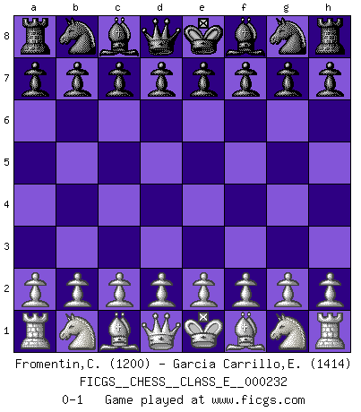 Last move : 0-1 2020 July 6 17:37:44 [Event "FICGS__CHESS__CLASS_E__000232"] [Site "FICGS"] [Date "2020.05.27"] [Round "1"] [White "Fromentin,Cynthia"] [Black "Garcia Carrillo,Exal"] [Result "0-1"] [WhiteElo "1200"] [BlackElo "1414"] 0-1 This chess game has been lost on time (started : 2020.05.27 12:47:44) Player Black won this chess game. Follow this game move after move (download)One bad move nullifies forty good ones. (Horowitz) Nicht daß Diemer aus Opportunismus Mitglied der NSDAP geworden wäre. Er war ein Fanatiker, in allem, was er tat. (Hans Ree) El Ajedrez es un invernadero donde los frutos del carácter pueden madurar mas completamente que en la vida. (Edward Morgan Foster) Les échecs, c'est l'art d'analyser. (Mikhail Botvinnik) Life is like a ten-speed bicycle: most of us have gears we never use. (Charles M. Schulz)