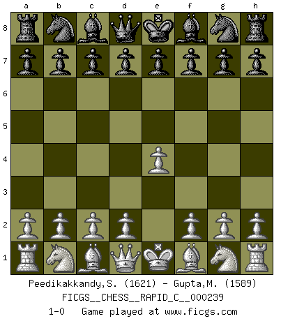 Last move : 1-0 2020 July 15 23:53:30 [Event "FICGS__CHESS__RAPID_C__000239"] [Site "FICGS"] [Date "2020.06.14"] [Round "1"] [White "Peedikakkandy,Sameer"] [Black "Gupta,Madan"] [Result "1-0"] [WhiteElo "1621"] [BlackElo "1589"] 1.e4 1-0 This chess game has been lost on time (started : 2020.06.14 15:37:30) King's pawn Opening Player White won this chess game. Follow this game move after move (download)You must take your opponent into a deep dark forest where 2+2=5, and the path leading out is only wide enough for one. (Mikhail Tal) Je mehr ich von der FIDE weiss, um so weniger verstehe ich. (Alexander Kalifman) Juega la Apertura como un libro, el Juego Medio como un mago y los Finales como una máquina. (Spielmann) À la honte des hommes, on sait que les lois du jeu sont les seules qui soient partout justes, claires, inviolables et exécutées. Pourquoi l'Indien qui a donné les règles du jeu d'échecs est-il obéi de bon gré dans toute la terre, et que les décrétales des papes, par exemple, sont aujourd'hui un objet d'horreur et de mépris ? C'est que l'inventeur des échecs combina tout avec justesse pour la satisfaction des joueurs, et que les papes, dans leurs décrétales, n'eurent en vue que leur seul avantage. L'Indien voulut exercer également l'esprit des hommes et leur donner du plaisir; les papes ont voulu abrutir l'esprit des hommes. Voltaire (Dictionnaire philosophique / Garnier 1967) Drag your thoughts away from your troubles... by the ears, by the heels, or any other way you can manage it. (Mark Twain)