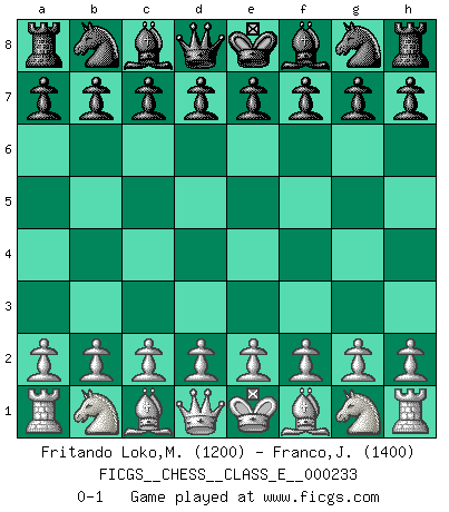 Last move : 0-1 2020 July 30 9:58:29 [Event "FICGS__CHESS__CLASS_E__000233"] [Site "FICGS"] [Date "2020.06.19"] [Round "1"] [White "Fritando Loko,Mihauzinho"] [Black "Franco,Joao"] [Result "0-1"] [WhiteElo "1200"] [BlackElo "1400"] 0-1 This chess game has been lost on time (started : 2020.06.19 22:16:45) Player Black won this chess game. Follow this game move after move (download)When you absolutely don't know what to do anymore, it is time to panic. (John van der Wiel) Später, ... hatte ich zunehmend Erfolg in entscheidenden Partien. Vielleicht weil ich eine einfache Wahrheit erkannte: nicht nur ich hatte Angst, auch mein Gegner. (Mikhail Nekhemyevich Tal) Aquel que ve no otra dirección en el juego que la de dar Jaque Mate a su oponente, nunca será un buen jugador de Ajedrez. (Euwe) C'est une question de caractère, Beaucoup de gens perdent leur motivation très vite. D'autres, ils sont rares, peuvent la conserver très longtemps. J'aime les échecs, encore aujourd'hui je suis heureux d'analyser des parties. J'aime toujours gagner, je déteste encore perdre. Bien jouer est important pour mon intégrité intellectuelle et morale. Et puis les échecs vivent en ce moment une période historique grâce à Internet. Ils se développent dans les systèmes éducatifs à travers le monde. Ils sortent de leur ghetto, et c'est mon rôle de mener à bien cette révolution. (Gary Kasparov) War is the child of passion, passion is the child of narcissism and narcissism is the child. (...) Another game ? (Thibault de Vassal)