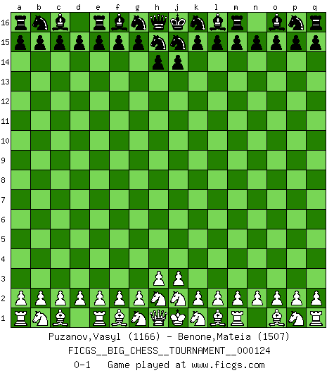 Last move : 0-1 2020 August 16 19:5:55 [Event "FICGS__BIG_CHESS__TOURNAMENT__000124"] [Site "FICGS"] [Date "2020.07.17"] [Round "1"] [White "Puzanov,Vasyl"] [Black "Benone,Mateia"] [Result "0-1"] [WhiteElo "1166"] [BlackElo "1507"] 0-1 This big chess game has been lost on time (started : 2020.07.17 9:36:30) Follow this game move after move (download)You know, comrade Pachman, I don't enjoy being a Minister, I would rather play Chess like you. (Che Guevara) Ich habe die Schachforschung dermaßen betrieben, dass sie auf eine wissenschaftliche Basis gestellt wurde. (Mikhail Moiseyevich Botvinik) Solo el jugador con la iniciativa tiene el derecho a atacar. (Wilhelm Steinitz) L'ordinateur a tué l'originalité. Il n'y a plus guère d'aventures sur l'échiquier. (Jacob Murray) Strategy without tactics is the slowest route to victory. Tactics without strategy is the noise before defeat. (Sun Tzu)