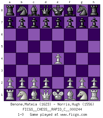 Last move : 1-0 2020 September 26 10:49:52 [Event "FICGS__CHESS__RAPID_C__000244"] [Site "FICGS"] [Date "2020.08.27"] [Round "1"] [White "Benone,Mateia"] [Black "Norris,Hugh"] [Result "1-0"] [WhiteElo "1623"] [BlackElo "1556"] 1.e4 1-0 This chess game has been lost on time (started : 2020.08.27 3:59:58) King's pawn Opening Player White won this chess game. Follow this game move after move (download)Bobby is the most misunderstood, misquoted celebrity walking the face of this earth. (Yasser Seirawan) Ich hatte Angst gegen einen russischen Großmeister zu verlieren, und er befürchtete gegen einen kleinen Jungen zu verlieren. (über ein Remis gegen Juri Awerbach). (Robert James Fischer) El Ajedrez es el gimnasio de la mente. (Blaise Pascal) Assurément je connaissais par expérience le mystérieux attrait de ce jeu royal, le seul entre tous les jeux inventés par les hommes qui échappe souverainement à la tyrannie du hasard, le seul où l'on ne doive sa victoire qu'à son intelligence ou plutôt à une certaine forme d'intelligence. Mais n'est-ce pas déjà le limiter injurieusement que d'appeler les échecs un jeu ? N'est-ce pas une science, un art ou quelque chose qui, comme le cercueil de Mahomet entre ciel et terre, est suspendu entre l'un et l'autre, et qui réunit un nombre incroyable de contraires ? [...] C'est une pensée qui ne mène à rien, une mathématique qui n'établit rien, un art qui ne laisse pas d'uvre, une architecture sans matière; et il l'a prouvé néanmoins qu'il était plus durable, à sa manière, que les livres ou que tout autre monument, ce jeu unique qui appartient à tous les peuples et à tous les temps, et dont personne ne sait quel dieu en fit don à la terre pour tuer l'ennui, pour aiguiser l'esprit et stimuler l'âme. Où commence-t-il, où finit-il ? (Stefan Zweig) I find your interest interesting. (Gregory House, House M.D.)