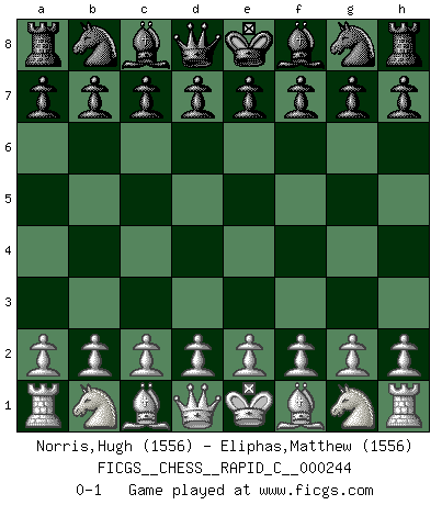 Last move : 0-1 2020 September 26 10:49:52 [Event "FICGS__CHESS__RAPID_C__000244"] [Site "FICGS"] [Date "2020.08.27"] [Round "1"] [White "Norris,Hugh"] [Black "Eliphas,Matthew"] [Result "0-1"] [WhiteElo "1556"] [BlackElo "1556"] 0-1 This chess game has been lost on time (started : 2020.08.27 3:59:58) Player Black won this chess game. Follow this game move after move (download)A great player and a great example for many. His book My 60 Memorable Games had a big impact on me. It is a shame he didn't continue to enrich the world of chess with his unparalleled understanding after 1972. (Jan Timman, about Bobby Fischer's death) Es tut gut, die Entwicklungsperiode von, [...] demokratischem Geist durchdringen zu lassen. Wie undemokratisch wäre es doch beispielsweise, den einen Offizier große Spaziertouren vornehmen zu lassen, während die anderen zu Hause säßen und sich entsetzlich langweilten. (Aaron Nimzowitsch) El Ajedrez es un expediente tonto que hace creer a la gente inactiva que hacen una cosa muy astuta cuando solamente estan perdiendo su tiempo. (George Bernard Shaw) A chaque perte on perd un peu de soi. (Joël Lautier) After growing wildly for years, the field of computing appears to be reaching its infancy. (John Pierce)