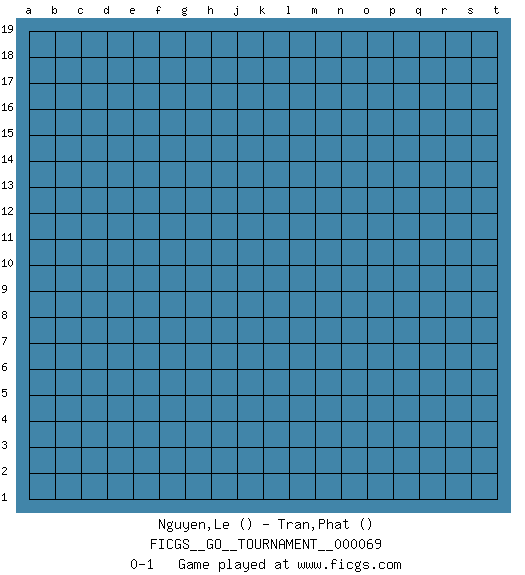 Last move : 0-1 2020 October 3 1:44:41 [Event "FICGS__GO__TOURNAMENT__000069"] [Site "FICGS"] [Date "2020.09.02"] [Round "1"] [Black "Nguyen,Le"] [White "Tran,Phat"] [Result "0-1"] 0-1 This go game has been lost on time (started : 2020.09.02 14:14:58) Here are the names of the openings (joseki) played in the four corners : Player White won this Go (weiqi, baduk) game. Follow this game move after move (download)To emphasize the lack of determination in his moves, one speaks of chance. (Pierre Audouard) When you have everything, sometimes it feels like nothing. (Horatio Caine, C.S.I. Miami)