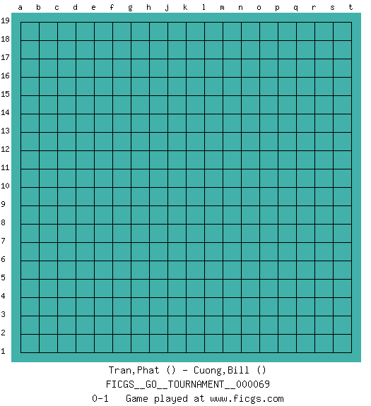 Last move : 0-1 2020 October 3 1:44:41 [Event "FICGS__GO__TOURNAMENT__000069"] [Site "FICGS"] [Date "2020.09.02"] [Round "1"] [Black "Tran,Phat"] [White "Cuong,Bill"] [Result "0-1"] 0-1 This go game has been lost on time (started : 2020.09.02 14:14:58) Here are the names of the openings (joseki) played in the four corners : Player White won this Go (weiqi, baduk) game. Follow this game move after move (download)You don't have to be really good anymore to get good results. What's happening with chess is that it's gradually losing its place as the par excellence of intellectual activity. Smart people in search of a challenging board game might try a game called Go. (Hans Berliner, The New York Times, 2003) Employ the attack like tactic of defense. (Chinese proverb)