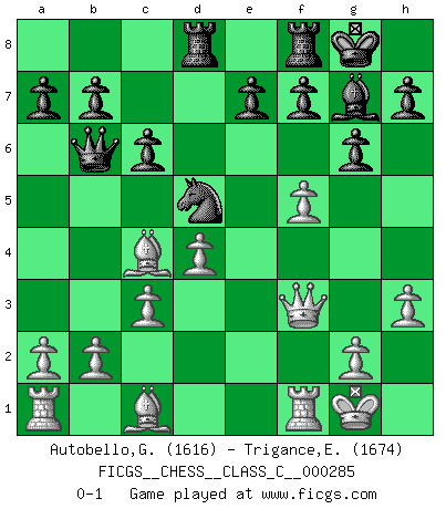 Last move : 0-1 2020 December 8 23:56:7 [Event "FICGS__CHESS__CLASS_C__000285"] [Site "FICGS"] [Date "2020.09.10"] [Round "1"] [White "Autobello,Giovanni"] [Black "Trigance,Emile"] [Result "0-1"] [WhiteElo "1616"] [BlackElo "1674"] 1.d4 d6 2.e4 Nf6 3.Nc3 g6 4.f4 Bg7 5.Nf3 O-O 6.Bc4 Nxe4 7.Nxe4 d5 8.Bd3 dxe4 9.Bxe4 c6 10.c3 Nd7 11.O-O Nf6 12.Bd3 Bg4 13.h3 Bxf3 14.Qxf3 Qb6 15.f5 Nd5 16.Bc4 Rad8 0-1 This chess game has been lost on time (started : 2020.09.10 13:32:51) Follow this game move after move (download)At this time Fischer is simply a level above all the best Chessplayers in the world. (John Jacobs) Jeder Schachmeister war einmal ein Anfänger. (Irving Chernev) El poder defensivo de una pieza clavada, solamente es imaginario. (Aaron Nimzovich) La solitude du joueur d'Echecs à l'approche du mat est semblable à celle du condamné. (Francis Szpiner) Nothing is more important for teaching us to understand the concepts we have than constructing fictitious ones. (Ludwig Wittgenstein)