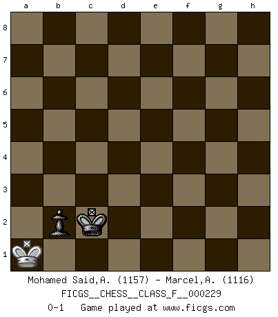 Last move : 0-1 2020 November 11 19:21:37 [Event "FICGS__CHESS__CLASS_F__000229"] [Site "FICGS"] [Date "2020.10.13"] [Round "1"] [White "Mohamed Said,Azaim"] [Black "Marcel,Alexis"] [Result "0-1"] [WhiteElo "1157"] [BlackElo "1116"] 1.e4 e5 2.Nf3 Nf6 3.Nxe5 d6 4.Nf3 Nxe4 5.Bb5+ c6 6.Qe2 Qe7 7.d3 Nf6 8.Qxe7+ Bxe7 9.Ba4 b5 10.Bb3 O-O 11.O-O Bb7 12.Re1 Re8 13.Bg5 Nbd7 14.Nc3 a5 15.a3 a4 16.Ba2 h6 17.Bh4 Kf8 18.Ne4 Nxe4 19.Bxe7+ Rxe7 20.Rxe4 Rae8 21.Rxe7 Rxe7 22.Kf1 Ne5 23.Re1 Nxf3 24.gxf3 d5 25.c4 dxc4 26.dxc4 g6 27.Rd1 Ke8 28.cxb5 cxb5 29.Rd6 Bxf3 30.Rb6 Re5 31.Rf6 Bd5 32.Bxd5 Rxd5 33.Rb6 Rf5 34.Rd6 Ke7 35.Rd4 Kf6 36.Rb4 h5 37.Ke2 g5 38.h4 gxh4 39.Rxh4 Kg5 40.Rb4 Rd5 41.Kf1 f6 42.Kg2 f5 43.Kg3 f4+ 44.Rxf4 Rd3+ 45.f3 Rb3 46.Rb4 Rxb4 47.axb4 Kf5 48.Kh4 Kf4 49.Kxh5 Kxf3 50.Kg5 Ke3 51.Kf5 Kd4 52.Kf4 Kc4 53.Ke3 Kxb4 54.Kd2 a3 55.bxa3+ Kxa3 56.Kc2 b4 57.Kb1 Kb3 58.Ka1 Kc2 59.Ka2 b3+ 60.Ka1 b2+ 0-1 Follow this game move after move (download)Botvinnik tried to take the mystery out of Chess, always relating it to situations in ordinary life. He used to call Chess a typical inexact problem similar to those which people are always having to solve in everyday life. (Garry Kasparov) Über Kasparov: Es ist offensichtlich, daß er in einem totalitären Staat aufwuchs und deshalb zu diktatorischen Zügen neigt. (Viktor Kortschnoi) La enorme capacidad mental, en la que sin ella no puede un jugador de Ajedrez existir, es demasiado requerida por el Ajedrez al grado de que nunca podrá liberar su mente de este juego. (Albert Einstein) Il n'y a pas de prix trop élevé au scalp de l'ennemi. (Koblentz) I find your interest interesting. (Gregory House, House M.D.)