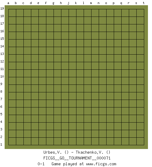 Last move : 0-1 2020 November 15 20:18:45 [Event "FICGS__GO__TOURNAMENT__000071"] [Site "FICGS"] [Date "2020.10.16"] [Round "1"] [Black "Urbes,Vincent"] [White "Tkachenko,Valentin"] [Result "0-1"] 0-1 This go game has been lost on time (started : 2020.10.16 9:35:43) Follow this game move after move (download)Josekis are not fixed, definitive things. They indicate the moments when everything can change. (Pierre Audouard) For a mechanic, you seem to do an excessive amount of thinking. (C-3PO in Star Wars ep.2)