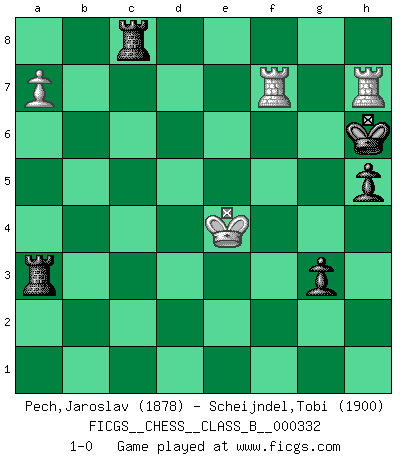 Last move : 1-0 2022 April 6 9:6:45 [Event "FICGS__CHESS__CLASS_B__000332"] [Site "FICGS"] [Date "2020.10.17"] [Round "1"] [White "Pech,Jaroslav"] [Black "Scheijndel,Tobi"] [Result "1-0"] [WhiteElo "1878"] [BlackElo "1900"] 1.e4 c5 2.Nf3 e6 3.d4 cxd4 4.Nxd4 Nc6 5.Nc3 Qc7 6.Be3 a6 7.Qd2 Nf6 8.O-O-O Be7 9.f3 b5 10.g4 Nxd4 11.Bxd4 Bb7 12.Kb1 O-O 13.g5 Nh5 14.Ne2 f5 15.gxf6 Bxf6 16.Bxf6 Nxf6 17.h4 Rf7 18.Rg1 Qh2 19.Qe3 Raf8 20.Qg5 h6 21.Qg3 Qxg3 22.Nxg3 Bc6 23.Ne2 Nh5 24.Nd4 Bb7 25.c4 bxc4 26.Bxc4 Rf4 27.a3 Kh7 28.Nb3 d5 29.Bf1 Rxh4 30.Nc5 Bc8 31.Bxa6 Bxa6 32.Nxa6 Rxf3 33.exd5 exd5 34.Nc5 Nf6 35.a4 Re3 36.Rge1 d4 37.Rc1 Ne4 38.Red1 Nxc5 39.Rxc5 d3 40.b3 g5 41.a5 Rd4 42.Rc7+ Kg6 43.a6 Re8 44.a7 Rd6 45.Kc1 Ra8 46.Rf1 d2+ 47.Kd1 h5 48.R1f7 g4 49.Rg7+ Kh6 50.b4 Rb6 51.Rh7+ Kg6 52.Kxd2 Rxb4 53.Rhg7+ Kh6 54.Ke3 Rb3+ 55.Kf4 Rf3+ 56.Ke5 g3 57.Ke4 Ra3 58.Rcf7 Rc8 59.Rh7+ 1-0 This chess game has been lost on time (started : 2020.10.17 20:31:52) Follow this game move after move (download)A passed Pawn increases in strength as the number of pieces on the board diminishes. (Capablanca) Im Schach gibt es keinen Platz für Galanterie. (Irving Chernev) El poder defensivo de una pieza clavada, solamente es imaginario. (Aaron Nimzovich) Aucun coup ne doit être joué sans but. (Pedro Damiano) Quotation,n.: The act of repeating erroneously the words of another. The words erroneously repeated. (Ambrose Bierce, The Devil's Dictionary)