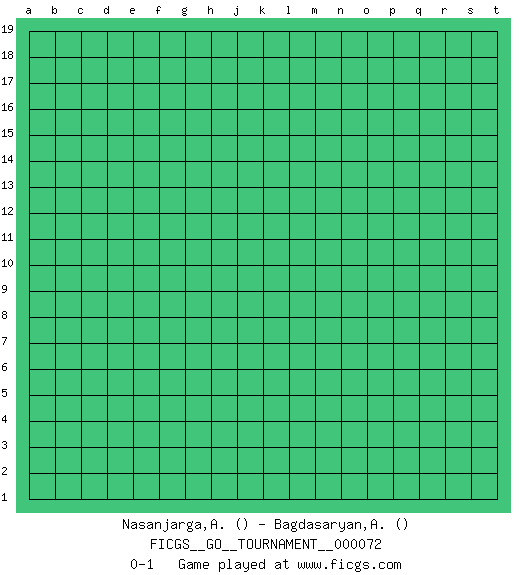 Last move : 0-1 2020 November 29 6:3:14 [Event "FICGS__GO__TOURNAMENT__000072"] [Site "FICGS"] [Date "2020.10.30"] [Round "1"] [Black "Nasanjarga,Altanbagana"] [White "Bagdasaryan,Andranik"] [Result "0-1"] 0-1 This go game has been lost on time (started : 2020.10.30 1:26:40) Follow this game move after move (download)Play slow, win slow; play fast, lose fast. (Anonymous) There are two major products that came out of Berkeley: LSD and UNIX. We do not believe this is to be a coincidence. (Jeremy S. Anderson)