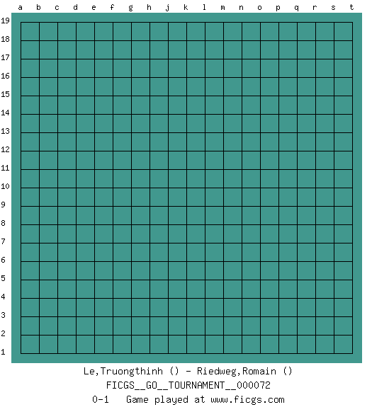 Last move : 0-1 2020 November 29 6:3:14 [Event "FICGS__GO__TOURNAMENT__000072"] [Site "FICGS"] [Date "2020.10.30"] [Round "1"] [Black "Le,Truongthinh"] [White "Riedweg,Romain"] [Result "0-1"] 0-1 This go game has been lost on time (started : 2020.10.30 1:26:40) Follow this game move after move (download)Do not make moves that strengthen your opponent ! (Anonymous) Heh, heh, heh. Time to abandon ship. (General Grievous in Star Wars ep.3)