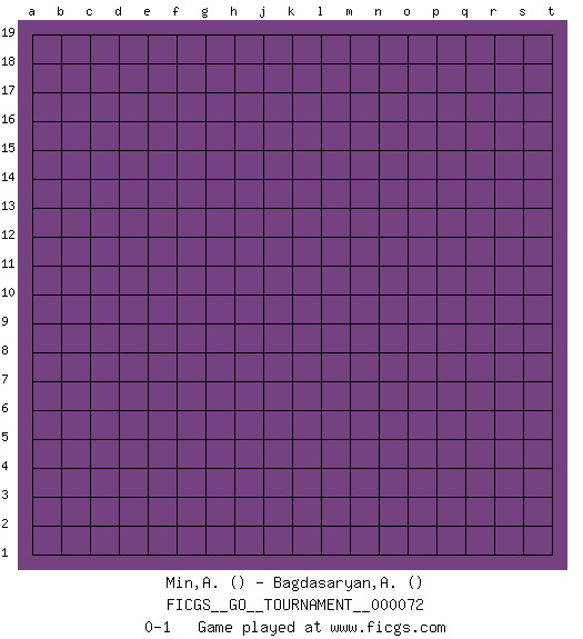 Last move : 0-1 2020 November 29 6:3:14 [Event "FICGS__GO__TOURNAMENT__000072"] [Site "FICGS"] [Date "2020.10.30"] [Round "1"] [Black "Min,Athanasia"] [White "Bagdasaryan,Andranik"] [Result "0-1"] 0-1 This go game has been lost on time (started : 2020.10.30 1:26:40) Follow this game move after move (download)Don't make a play adjacent to a cutting-point. (Anonymous) Whenever people agree with me, I always feel I must be wrong. (Oscar Wilde)