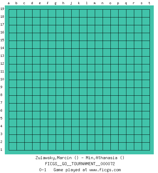 Last move : 0-1 2020 November 29 6:3:14 [Event "FICGS__GO__TOURNAMENT__000072"] [Site "FICGS"] [Date "2020.10.30"] [Round "1"] [Black "Zulawsky,Marcin"] [White "Min,Athanasia"] [Result "0-1"] 0-1 This go game has been lost on time (started : 2020.10.30 1:26:40) Follow this game move after move (download)Knight's moves win running battles. (Anonymous) Children in the dark cause accidents, accidents in the dark cause children. (Unknown)