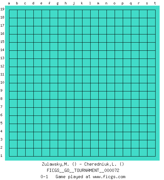 Last move : 0-1 2020 November 29 6:3:14 [Event "FICGS__GO__TOURNAMENT__000072"] [Site "FICGS"] [Date "2020.10.30"] [Round "1"] [Black "Zulawsky,Marcin"] [White "Cheredniuk,Liudmila"] [Result "0-1"] 0-1 This go game has been lost on time (started : 2020.10.30 1:26:40) Follow this game move after move (download)Dead group ? Always win ko fights ! (Anonymous) Never was anything great achieved without danger. (Niccolo Machiavelli)