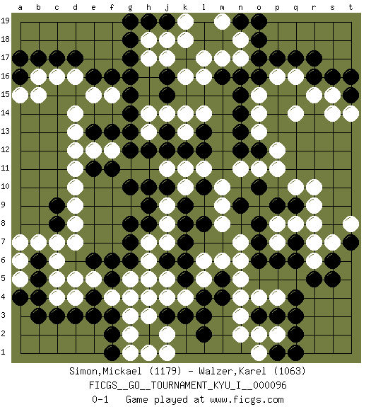 Last move : 0-1 2021 May 8 21:42:26 [Event "FICGS__GO__TOURNAMENT_KYU_I__000096"] [Site "FICGS"] [Date "2020.11.02"] [Round "1"] [Black "Simon,Mickael"] [White "Walzer,Karel"] [Result "0-1"] [Rating 1 "1179"] [Rating 2 "1063"] 1.r16 d4 2.q3 c16 3.e16 d14 4.f3 h3 5.c3 c4 6.d3 f4 7.e4 e5 8.e3 g4 9.b4 c5 10.b5 c6 11.p17 q16 12.q17 p16 13.o16 q14 14.c17 b16 15.b17 d16 16.d17 e15 17.f16 f15 18.g16 d10 19.r5 r15 20.r17 o15 21.n16 k16 22.g15 m17 23.n15 r10 24.k3 n3 25.k5 p2 26.q2 n5 27.k7 r7 28.f5 h6 29.e6 d5 30.f6 d7 31.g7 h7 32.g8 j8 33.g10 j9 34.q6 n7 35.l8 j11 36.g12 f12 37.f11 e12 38.g14 h13 39.g13 h17 40.b6 b7 41.a16 a15 42.a17 b15 43.n9 p8 44.l10 n11 45.l12 k13 46.l13 k14 47.n13 o14 48.n14 o13 49.j10 k10 50.h10 l11 51.k9 k11 52.o10 p11 53.l2 j2 54.k8 k4 55.l4 j4 56.o7 l5 57.m5 l6 58.k6 m6 59.m4 n4 60.o8 m10 61.l3 m9 62.h5 j5 63.o6 n6 64.j6 g5 65.h8 j7 66.g6 h4 67.h9 h5 68.h2 g2 69.h1 j1 70.j3 g1 71.h2 g3 72.f2 m8 73.p9 q8 74.g18 h18 75.e11 d11 76.s16 s15 77.p3 o2 78.t15 t14 79.t16 s14 80.s6 s7 81.g17 n18 82.o18 n17 83.o17 l14 84.n12 o11 85.h19 j18 86.j19 k19 87.f1 h1 88.p1 o1 89.q1 r6 90.o3 n2 91.q9 r9 92.s5 p7 93.p6 o4 94.g19 k18 95.m16 l17 96.j15 l16 97.q7 r8 98.e13 d13 99.f13 d12 100.c8 d8 101.c9 c7 102.o12 p12 103.h12 d9 104.j13 j14 105.j12 h14 106.j16 j17 107.k12 p4 108.q4 q10 109.n19 m19 110.o19 a6 111.b3 a5 112.a4 a7 113.t7 t8 0-1 Follow this game move after move (download)Josekis are not fixed, definitive things. They indicate the moments when everything can change. (Pierre Audouard) You must have a dream in order to have it come true. (A.P.J. Kalam)