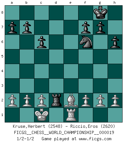 FICGS__CHESS__WORLD_CHAMPIONSHIP__000019 (type : rated knockout, time : 30 days, increment : 1 day / move)
