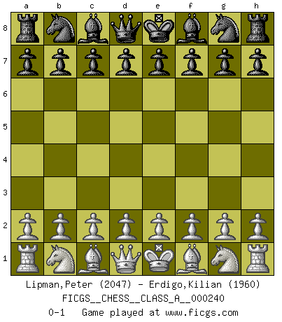 Last move : 0-1 2020 December 25 12:56:50 [Event "FICGS__CHESS__CLASS_A__000240"] [Site "FICGS"] [Date "2020.11.15"] [Round "1"] [White "Lipman,Peter"] [Black "Erdigo,Kilian"] [Result "0-1"] [WhiteElo "2047"] [BlackElo "1960"] 0-1 This chess game has been lost on time (started : 2020.11.15 12:26:27) Player Black won this chess game. Follow this game move after move (download)The battle for the ultimate truth will never be won. And that's why Chess is so fascinating. (Hans Kmoch) Auf jeden Fall musst du zuerst Rechtsanwalt werden, damit du deine eigenen Interessen und die deiner Familie vertreten kannst. [Brief an seinen Sohn] (José Raúl Capablanca) La última cosa en que Fischer estaba interesado era en tonterías, siempre y cuando el Ajedrez estuviera involucrado. (Elie Agur) Karpov est une pièce de musée. (Garry Kasparov) Is not life a hundred times too short to bore ourselves ? (Friedrich Nietzsche)