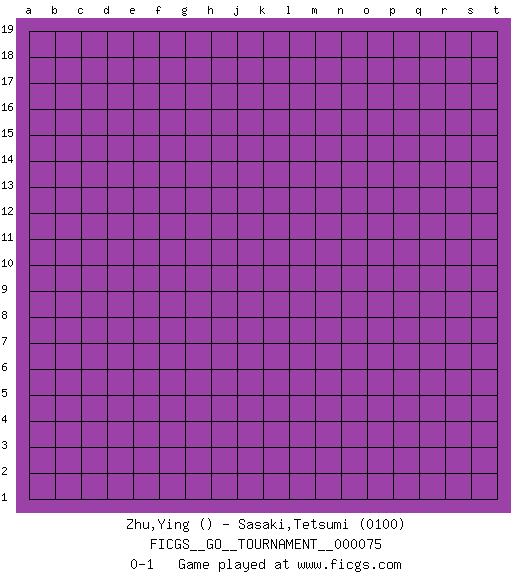 Last move : 0-1 2021 January 2 16:43:29 [Event "FICGS__GO__TOURNAMENT__000075"] [Site "FICGS"] [Date "2020.12.03"] [Round "1"] [Black "Zhu,Ying"] [White "Sasaki,Tetsumi"] [Result "0-1"] [Rating 2 "0100"] 0-1 This go game has been lost on time (started : 2020.12.03 6:53:24) Here are the names of the openings (joseki) played in the four corners : Player White won this Go (weiqi, baduk) game. Follow this game move after move (download)Stop on second, extend on third. (Anonymous) I couldn't make any sense out of what this particular thread is about. It sounds like R2 D2 computer speaking. A space fight ?!? Some 'command' problems in Moscow ? Some killers & narcotic addicts attacking some game & a god wannabe ?? (Dinesh De Silva, lost in a russian conflict in FICGS forum)