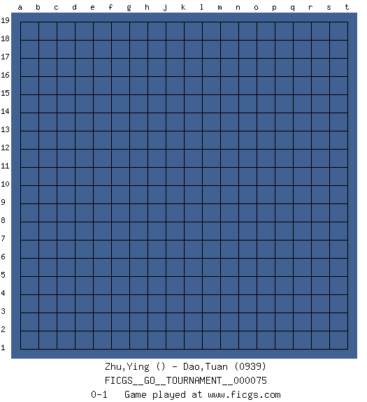 Last move : 0-1 2021 January 2 16:43:29 [Event "FICGS__GO__TOURNAMENT__000075"] [Site "FICGS"] [Date "2020.12.03"] [Round "1"] [Black "Zhu,Ying"] [White "Dao,Tuan"] [Result "0-1"] [Rating 2 "0939"] 0-1 This go game has been lost on time (started : 2020.12.03 6:53:24) Here are the names of the openings (joseki) played in the four corners : Player White won this Go (weiqi, baduk) game. Follow this game move after move (download)Error is one of the sources of transformation. (Pierre Audouard) To be champion requires more than simply being a strong player; one has to be a strong human being as well. (Anatoly Karpov)