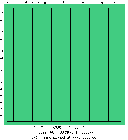 Last move : 0-1 2021 January 26 13:45:7 [Event "FICGS__GO__TOURNAMENT__000077"] [Site "FICGS"] [Date "2020.12.26"] [Round "1"] [Black "Dao,Tuan"] [White "Guo,Yi Chen"] [Result "0-1"] [Rating 1 "0785"] 0-1 This go game has been lost on time (started : 2020.12.26 22:1:35) Here are the names of the openings (joseki) played in the four corners : Player White won this Go (weiqi, baduk) game. Follow this game move after move (download)When your opponent is thick, you must also become thick. (Otake Hideo, 9p) Life is like a play: it's not the length but the excellence of the acting that matters. (Seneca)