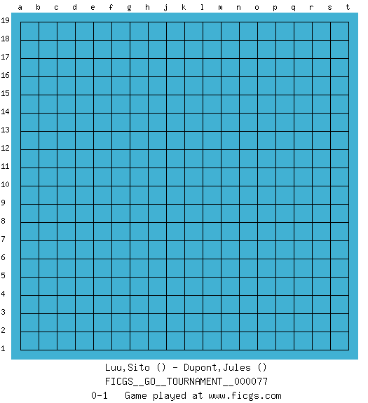 Last move : 0-1 2021 January 26 13:45:7 [Event "FICGS__GO__TOURNAMENT__000077"] [Site "FICGS"] [Date "2020.12.26"] [Round "1"] [Black "Luu,Sito"] [White "Dupont,Jules"] [Result "0-1"] 0-1 This go game has been lost on time (started : 2020.12.26 22:1:35) Here are the names of the openings (joseki) played in the four corners : Player White won this Go (weiqi, baduk) game. Follow this game move after move (download)Attach to the strongest stone in a pincer. (Anonymous) Excelling at chess has long been considered a symbol of more general intelligence. That is an incorrect assumption in my view, as pleasant as it might be. But for the purposes of argument and investigation, chess is, in Russkin-Gutman's words, 'an unparalleled laboratory, since both the learning process and the degree of ability obtained can be objectified and quantified, providing an excellent comparative framework on which to use rigorous analytical techniques.' (The Chess Master and the Computer, by Garry Kasparov - 2010)