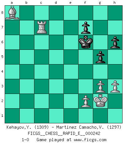 Last move : 1-0 2021 April 1 1:47:33 [Event "FICGS__CHESS__RAPID_E__000242"] [Site "FICGS"] [Date "2020.12.27"] [Round "1"] [White "Kehayov,Yulian"] [Black "Martinez Camacho,Victor Hugo"] [Result "1-0"] [WhiteElo "1309"] [BlackElo "1297"] 1.d4 Nf6 2.Nf3 e6 3.c4 d5 4.Nc3 Be7 5.Bf4 Nbd7 6.e3 dxc4 7.Bxc4 a6 8.O-O b5 9.Bd3 Bb7 10.e4 Nh5 11.Be3 O-O 12.Re1 Rc8 13.a3 c5 14.Rc1 c4 15.Bc2 Nhf6 16.h3 h6 17.d5 exd5 18.exd5 Bd6 19.Qd2 Ne5 20.Nxe5 Bxe5 21.Bf4 Bxf4 22.Qxf4 Nxd5 23.Nxd5 Qxd5 24.Be4 Qd7 25.Bxb7 Rc7 26.Bxa6 Qc6 27.Bxb5 Qb7 28.Bxc4 Qxb2 29.a4 Ra7 30.Bb5 R7a8 31.Qe4 Qf6 32.Qc6 Qxc6 33.Bxc6 Ra6 34.Re8 Rxe8 35.Bxe8 Kf8 36.Rc8 Ke7 37.Bb5 Rd6 38.g3 Rd1+ 39.Kg2 Rd4 40.Rc5 Rd2 41.a5 Ra2 42.a6 g5 43.Rc7+ Kf6 44.a7 Ra5 45.Bc6 Ra2 46.a8Q Rxa8 47.Bxa8 1-0 Queen's pawn game Kingside Castling by player White (move 8) Kingside Castling by player Black (move 11) Promotion Queen by player White (move 46) 10 pieces endgame at move 47 : White KRBPPP , Black KPPP WHITE : King + 1 Rook 1 Bishop 3 Pawns BLACK : King + 3 Pawns Player White won this chess game. Follow this game move after move (download)Robert Fischer is a law unto himself. (Larry Evans) Immer nach dem besten Zug zu suchen ist ziemlich unpraktisch. (Nigel Short) El Ajedrez tiene tanto misterio como las mujeres. (Purdy) Un millionnaire : 'Monsieur Steinitz ! Vous ne participez aux tournois que pour l'argent, alors que moi je n'y viens que pour l'honneur.' Steinitz : 'Chacun joue pour ce qu'il n'a pas'... Now be brave and don't look back. Don't look back. (Shmi Skywalker in Star Wars ep.1)