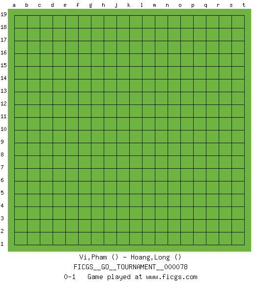 Last move : 0-1 2021 January 31 14:10:57 [Event "FICGS__GO__TOURNAMENT__000078"] [Site "FICGS"] [Date "2021.01.01"] [Round "1"] [Black "Vi,Pham"] [White "Hoang,Long"] [Result "0-1"] 0-1 This go game has been lost on time (started : 2021.01.01 1:22:3) Here are the names of the openings (joseki) played in the four corners : Player White won this Go (weiqi, baduk) game. Follow this game move after move (download)Don't make a play adjacent to a cutting-point. (Anonymous) Those parts of the system that you can hit with a hammer (not advised) are called hardware; those program instructions that you can only curse at are called software. (Anonymous)