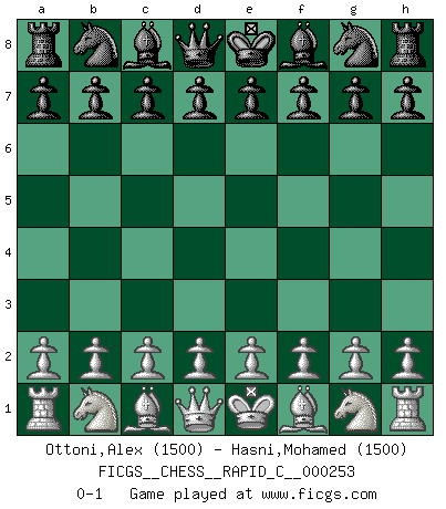 Last move : 0-1 2021 February 2 5:23:57 [Event "FICGS__CHESS__RAPID_C__000253"] [Site "FICGS"] [Date "2021.01.02"] [Round "1"] [White "Ottoni,Alex"] [Black "Hasni,Mohamed"] [Result "0-1"] [WhiteElo "1500"] [BlackElo "1500"] 0-1 This chess game has been lost on time (started : 2021.01.02 20:28:17) Player Black won this chess game. Follow this game move after move (download)I still hope to kill Fischer. (Boris Spassky) Im Spitzenschach von heute geht es nur um Vorbereitung, um tiefgründige, sorgfältige Eröffnungsvorbereitung. (Nigel Short) En la vida, como en el Ajedrez, los Peones propios obstruyen nuestro camino. La gran fortuna de un hombre, su comodidad, placer, hijos, libros, que deberían ayudarle a ganar, con mucha frecuencia lo ponen en Jaque Mate. (Charles Buxton) Botvinnik disait en comparant les échecs à la musique: Il existe une science dont le but est l'étude de l'acoustique et des sons. Mais il y a aussi un art qui se sert de l'océan des sons : c'est la musique. De toute évidence, il en est de même pour la pensée. La logique est l'étude des lois de la réflexion et les échecs reflètent, en tant qu'art, le côté logique de la réflexion, sous la forme d'images artistiques... Extrait de Fischer - Spassky, Reykjavik 1972 par Alexander & F. Wyndham (Ed. Solar), p 37. A good programmer is someone who always looks both ways before crossing a one-way street. (Doug Linder)
