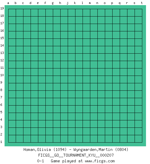 Last move : 0-1 2021 February 9 4:8:48 [Event "FICGS__GO__TOURNAMENT_KYU__000207"] [Site "FICGS"] [Date "2021.01.09"] [Round "1"] [Black "Homan,Olivia"] [White "Wyngaarden,Martin"] [Result "0-1"] [Rating 1 "1094"] [Rating 2 "0804"] 0-1 This go game has been lost on time (started : 2021.01.09 23:8:4) Here are the names of the openings (joseki) played in the four corners : Player White won this Go (weiqi, baduk) game. Follow this game move after move (download)The monkey jump is worth eight points. (Anonymous) Whoever said the pen is mightier than the sword obviously never encountered automatic weapons. (US General Douglas MacArthur)
