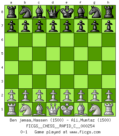 Last move : 0-1 2021 February 14 6:23:27 [Event "FICGS__CHESS__RAPID_C__000254"] [Site "FICGS"] [Date "2021.01.14"] [Round "1"] [White "Ben jemaa,Hassen"] [Black "Ali,Mumtaz"] [Result "0-1"] [WhiteElo "1500"] [BlackElo "1500"] 0-1 This chess game has been lost on time (started : 2021.01.14 20:54:12) Player Black won this chess game. Follow this game move after move (download)At this time Fischer is simply a level above all the best Chessplayers in the world. (John Jacobs) Jeder Schachmeister war einmal ein Anfänger. (Irving Chernev) La señal de un Gran Maestro es su habilidad de ganar una partida rápidamente y sin dolor. (Irving Chernev) Psychologiquement, tu dois avoir confiance en toi même, mais cette confiance doit être basée sur des faits. (Robert Fischer) I can't decide which is riskier; taking crazy risks, or taking advice on crazy risks from a crazy risk taker. (Gregory House in House M.D.)
