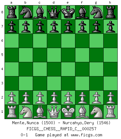 Last move : 0-1 2021 March 18 13:2:15 [Event "FICGS__CHESS__RAPID_C__000257"] [Site "FICGS"] [Date "2021.02.16"] [Round "1"] [White "Mente,Nunca"] [Black "Nurcahyo,Dery"] [Result "0-1"] [WhiteElo "1500"] [BlackElo "1546"] 0-1 This chess game has been lost on time (started : 2021.02.16 8:1:34) Player Black won this chess game. Follow this game move after move (download)I'd rather have a Pawn than a finger. (Reuben Fine) Wenn Spassky eine Figur opfert kannst du genauso gut aufgeben. Aber wenn Tal eine Figur opfert, spiel weiter. Er könnte noch eine weitere opfern, und dann ... wer weiß? (Miguel Najdorf) Cualquier cambio de material en una posición debe venir por medio de un mate, una captura o promoción de Peón. (Purdy) La vie est comme un jeu d'échecs : nous esquissons un plan, mais celui-ci est tributaire de ce que daignent faire l'adversaire aux échecs et le destin dans la vie. (Arthur Schopenhauer) Kids, you tried your best and you failed miserably. The lesson is, never try. (Simpsons)