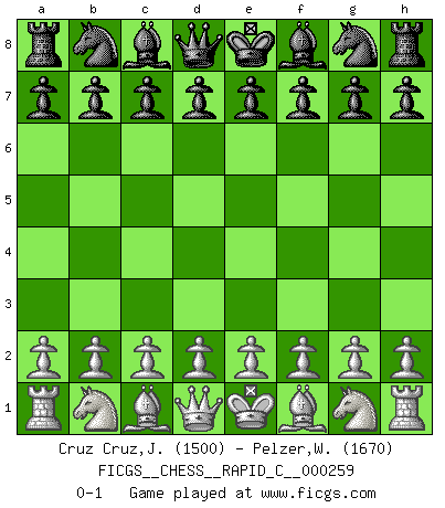 Last move : 0-1 2021 April 9 8:48:6 [Event "FICGS__CHESS__RAPID_C__000259"] [Site "FICGS"] [Date "2021.03.10"] [Round "1"] [White "Cruz Cruz,Juan Enrique"] [Black "Pelzer,Willi"] [Result "0-1"] [WhiteElo "1500"] [BlackElo "1670"] 0-1 This chess game has been lost on time (started : 2021.03.10 1:40:24) Player Black won this chess game. Follow this game move after move (download)Only the player with the initiative has the right to attack. (Wilhelm Steinitz) Schach verlangt totale Konzentration. (Robert James Fischer) No es suficiente ser un buen jugador, se debe también de jugar bién. (Siegbert Tarrasch) Lorsque vous vous retrouvez devant une position atroce, ne tendez pas un ultime piège dérisoire avec l'intention d'abandonner si l'adversaire le déjoue ! Faites-vous plutôt un devoir de résister comme si votre vie en dépendait. Jouez le coup qui vous déplairait au centuple si vous étiez dans la peau de votre tortionnaire ! Even the best needles are not sharp at both ends. (Chinese proverb)